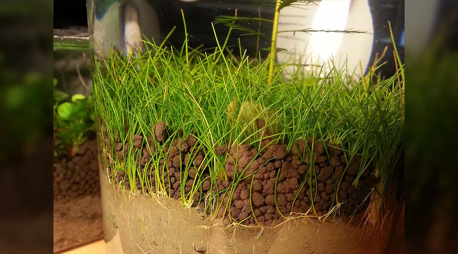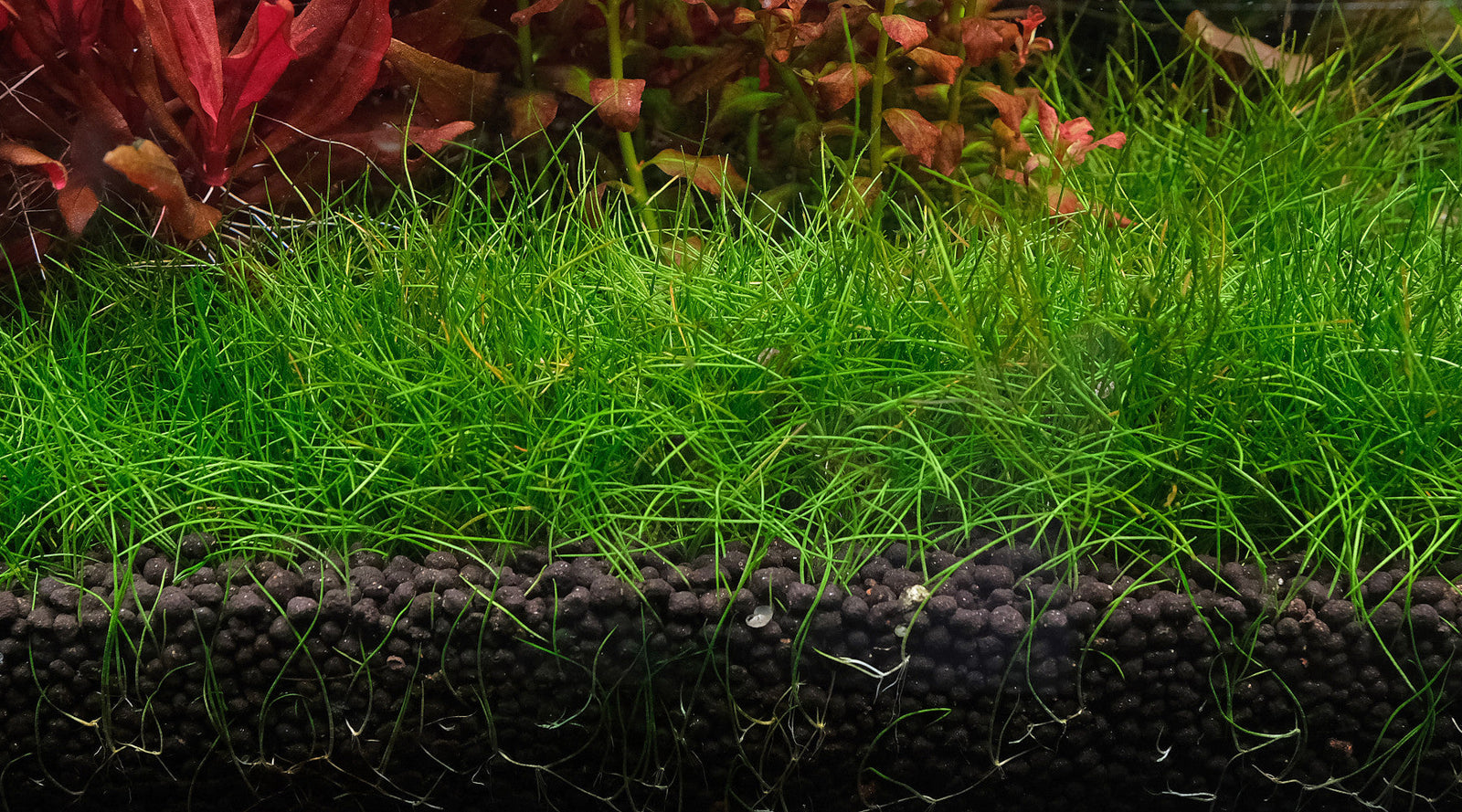 Grow a dense dwarf hairgrass carpet: 40–50 PAR with CO2, ~100 PAR no-CO2. Use rich aquasoil, plant 2–4 cm tufts, and trim/uproot sections to prevent algae.