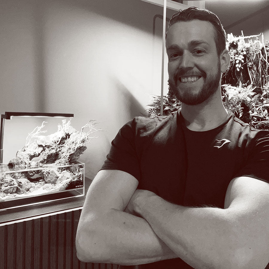 Combinando su pasión por el aquascaping y la fotografía de naturaleza, Tom representa con orgullo al Reino Unido en concursos internacionales, como el IAPLC, donde ha ganado su primer premio de honor. También es miembro de NAL, un equipo de aquascaping con sede en Japón y dirigido por su mentor, Masashi Ono.