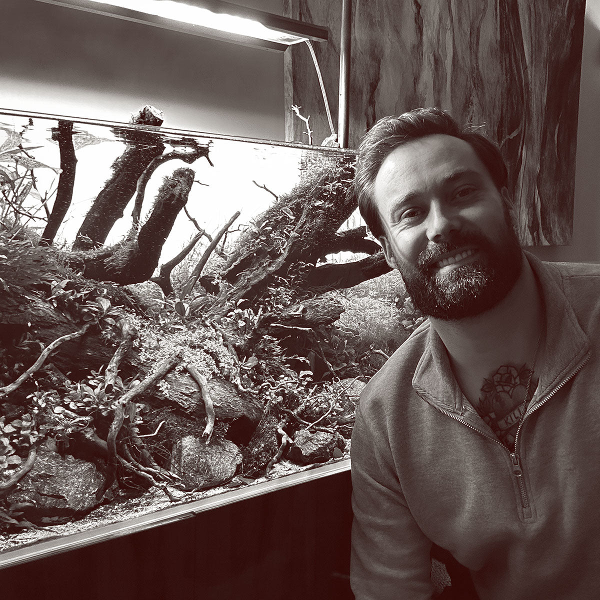Luke, que procede del Reino Unido, lleva más de una década dedicándose al paisajismo acuático y es conocido por sus coloridos y prístinos acuarios plantados.