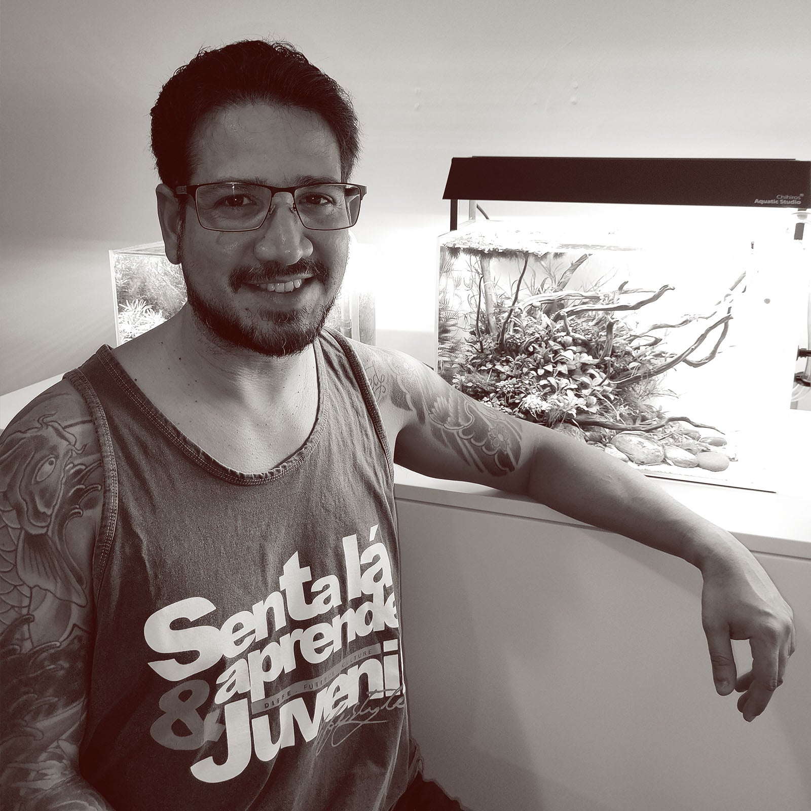 Marcelo creció en Brasil con una intensa pasión por el paisajismo acuático, y ahora en Portugal esta pasión no muestra signos de disminuir. Busca la perfección en cada acuario que toca y para él la constancia es la clave.