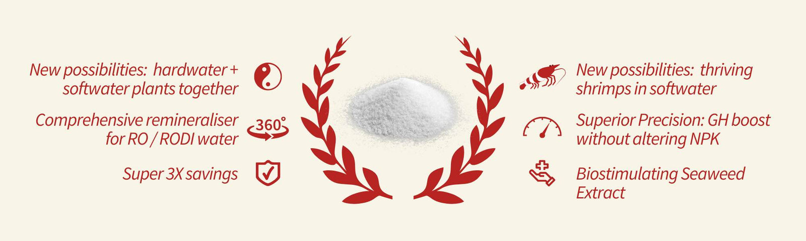 Enjoy the freedom to breed shrimps in softwater tanks, and have hardwater and softwater plants thrive side-by-side.